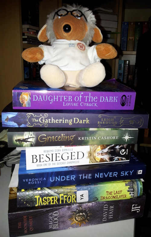Under the Never Sky, Veronica Rossi (review)Graceling, Kristin Cashore (borrowed)- Daughter of the Dark, Louise Cusack (my copy)